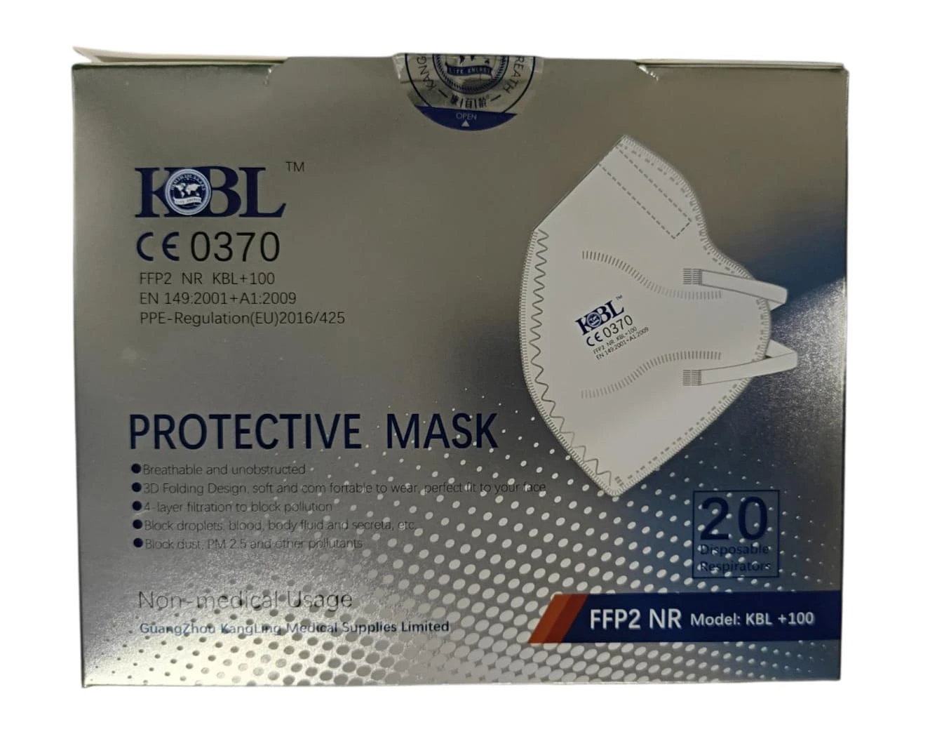 Profesjonalne maski ochronne FFP2 NR model KBL+100 zapewniają wysoki poziom ochrony przed pyłem, smogiem, aerozolami oraz innymi zanieczyszczeniami powietrza. Dzięki ergonomicznej konstrukcji maska dobrze dopasowuje się do twarzy, zapewniając komfort oddychania nawet podczas dłuższego użytkowania.