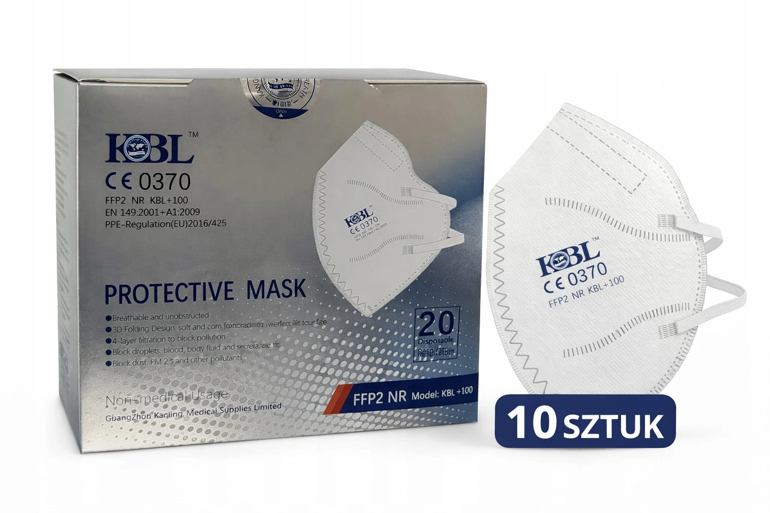 Maski ochronne FFP2 NR KBL+100 – skuteczna ochrona dróg oddechowych - 10 sztuk