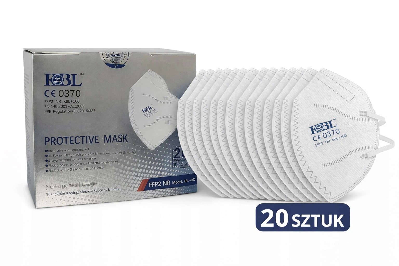 Maski ochronne FFP2 NR KBL+100 – skuteczna ochrona dróg oddechowych - 20 sztuk