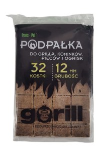 PODPAŁKA ROZPAŁKA BRĄZOWA DO GRILLA PIECA KOMINKA"GORILL" 32 KOSTKI,12mm