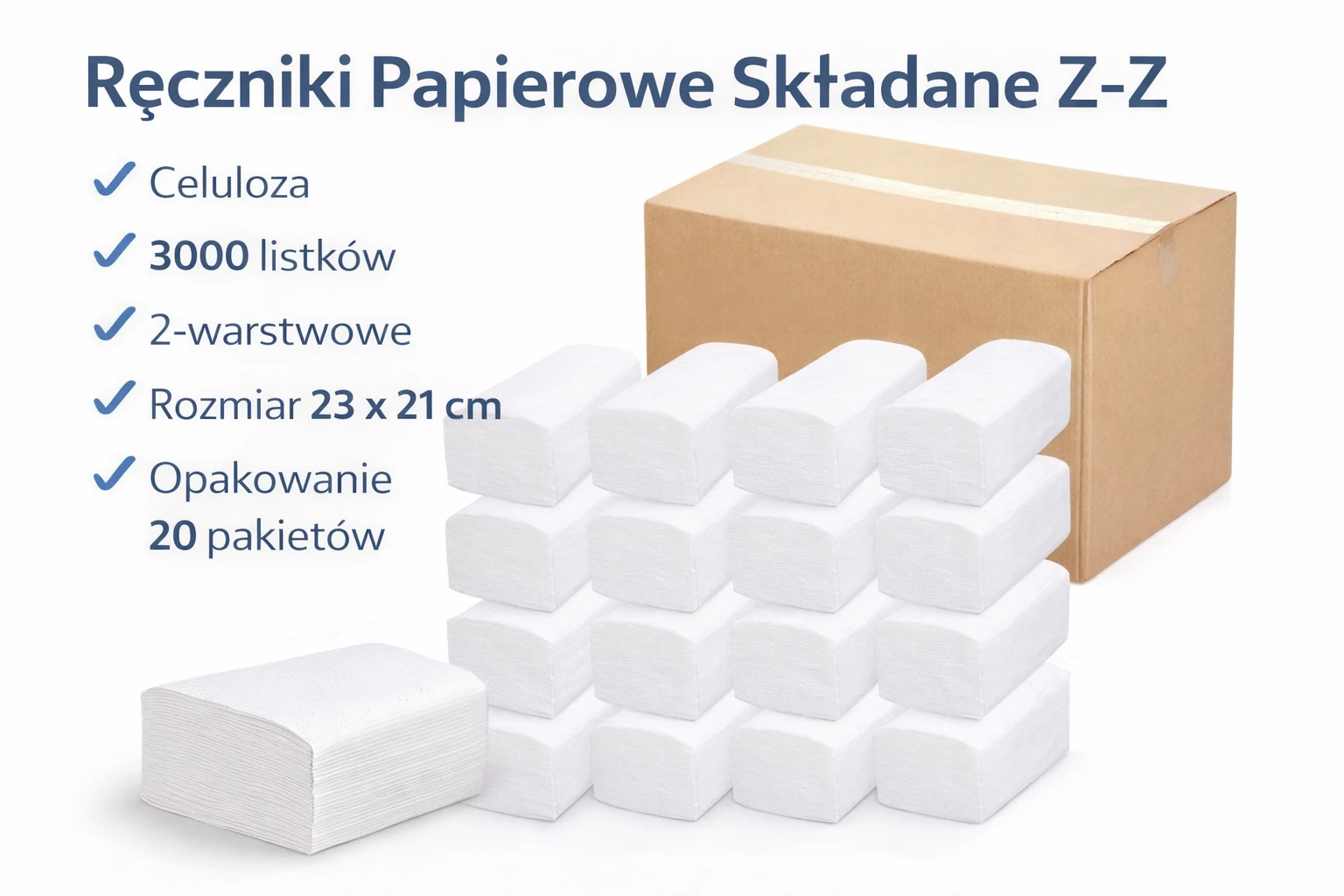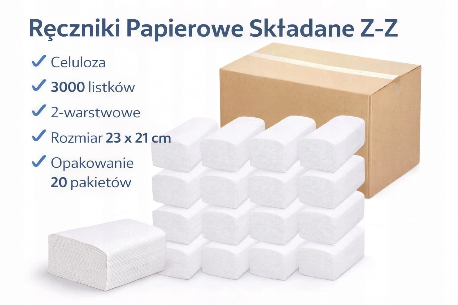 100% celuloza – wysoka jakość papieru✔ 2 warstwy – większa chłonność i wytrzymałość składanie Z-Z – wygodne dozowanie w podajnikach gofrowana struktura – lepsza absorpcja wody kolor biały
