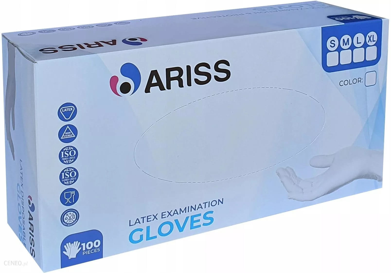 - RĘKAWICZKI LATEKSOWE BEZPUDROWE ARISS - 100 SZTUK W OP. - ROZMIAR M