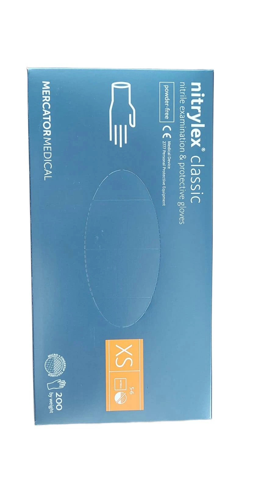 RĘKAWICZKI NITRYLOWE NIEBIESKIE NITRYLEX CLASSIC"MERCATOR" 200szt "XS"