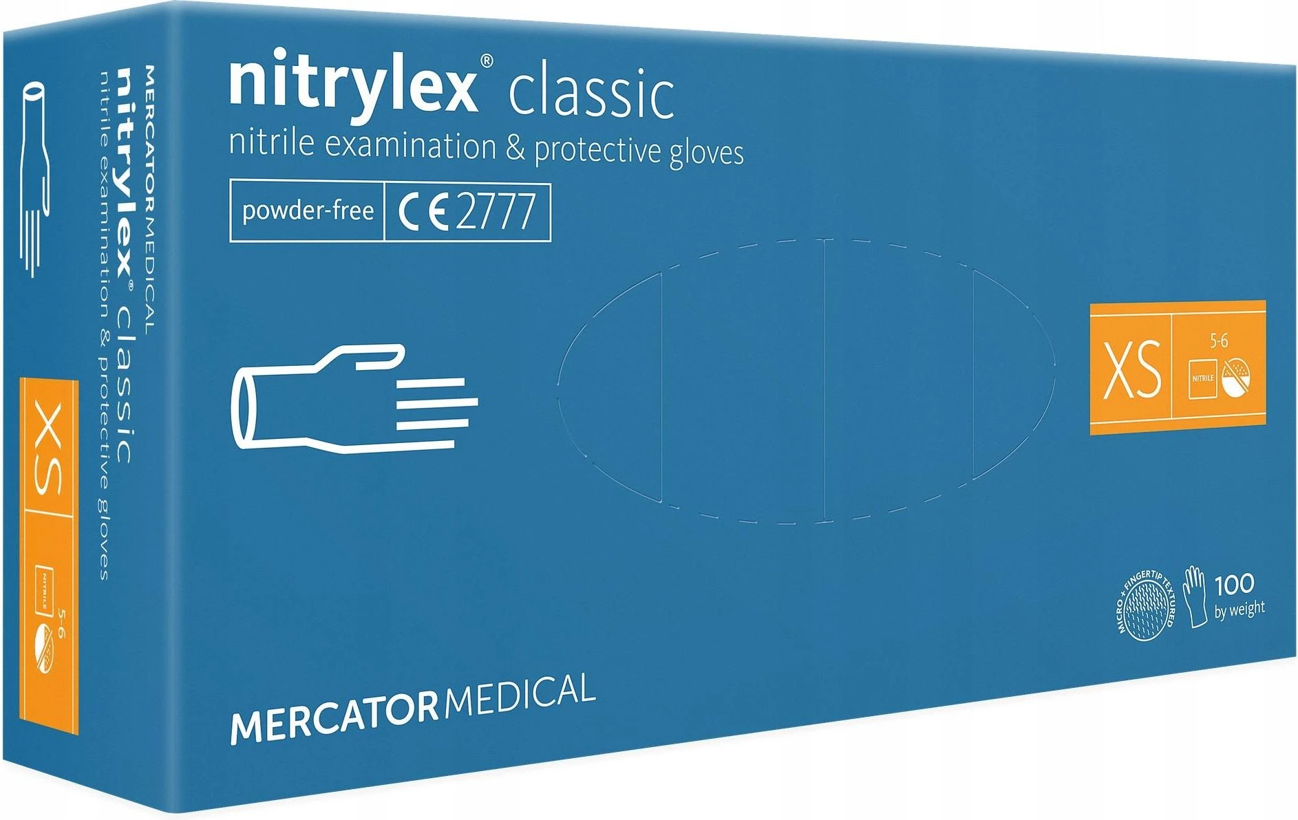 RĘKAWICZKI NITRYLOWE NIEBIESKIE NITRYLEX CLASSIC"MERCATOR" "XS", a'100