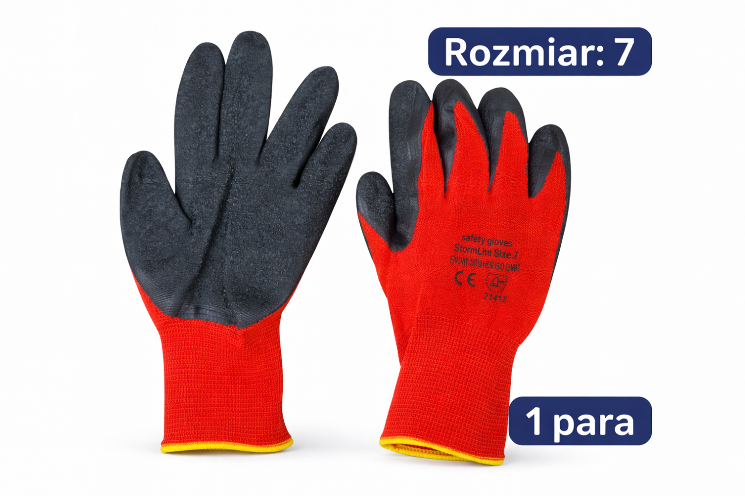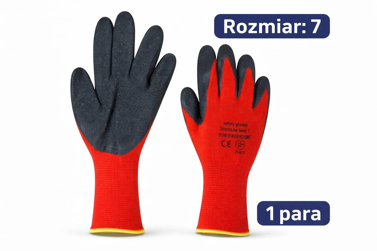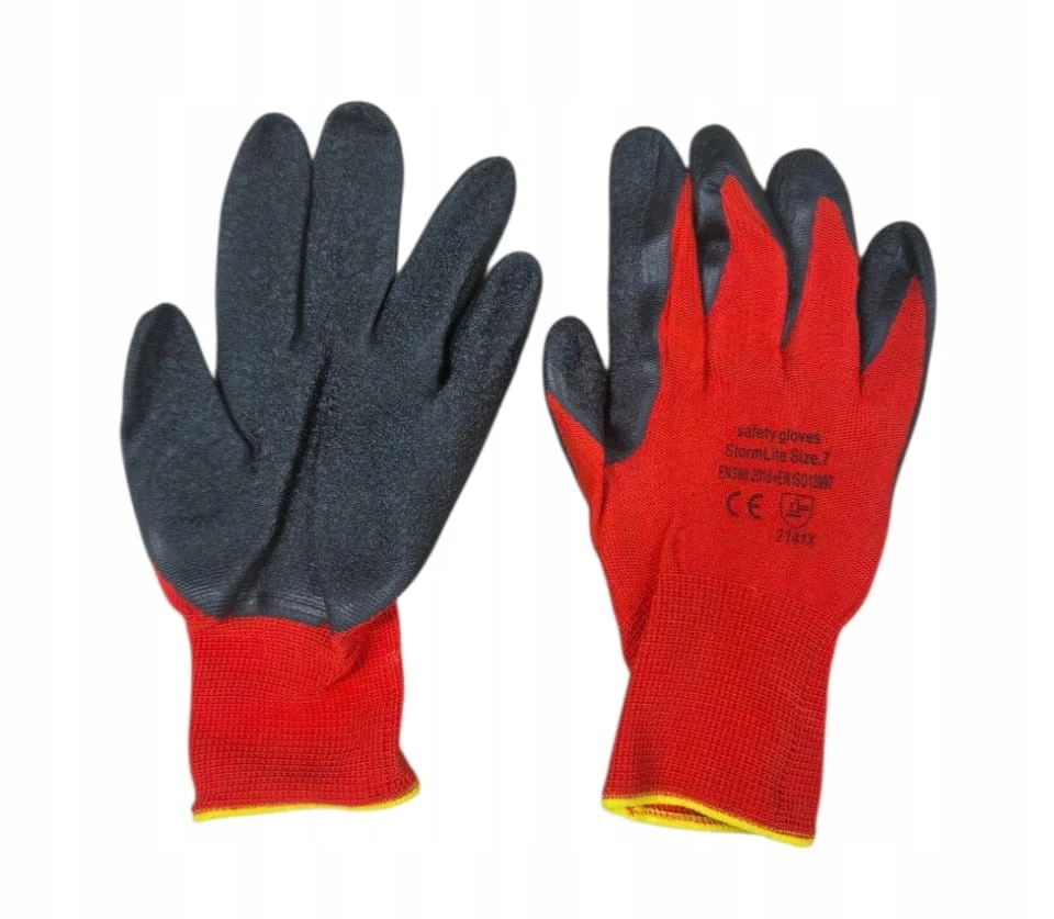 Rękawice robocze STORMLITE powlekane lateksem czerwone GRIP rozm. 7 - S