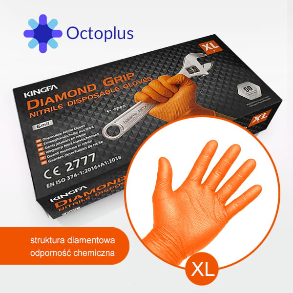 Rękawiczki nitrylowe pomarańczowe grube Grip 8,5 gr. Kingfa 50 szt. XL